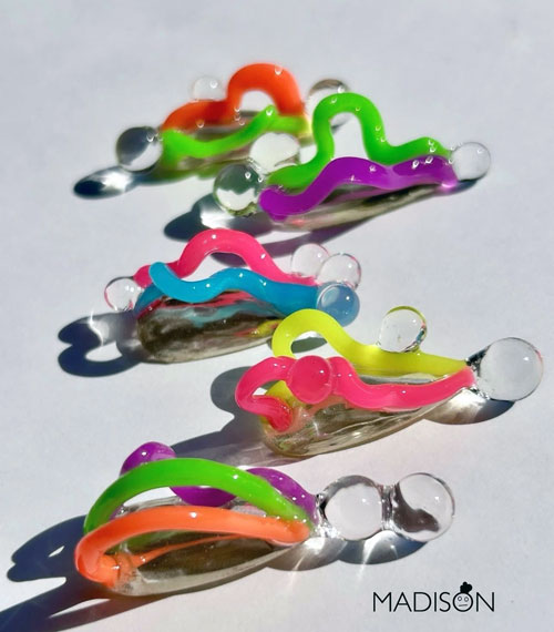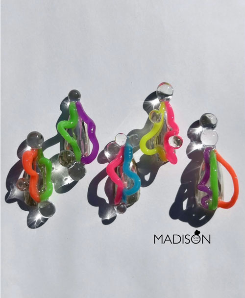 「カラフルな蛍光色の粘土系ジェルを使って楽しげなデザインに挑戦。ジェルの部分は暗闇で光るので、違った表情を楽しめます。」